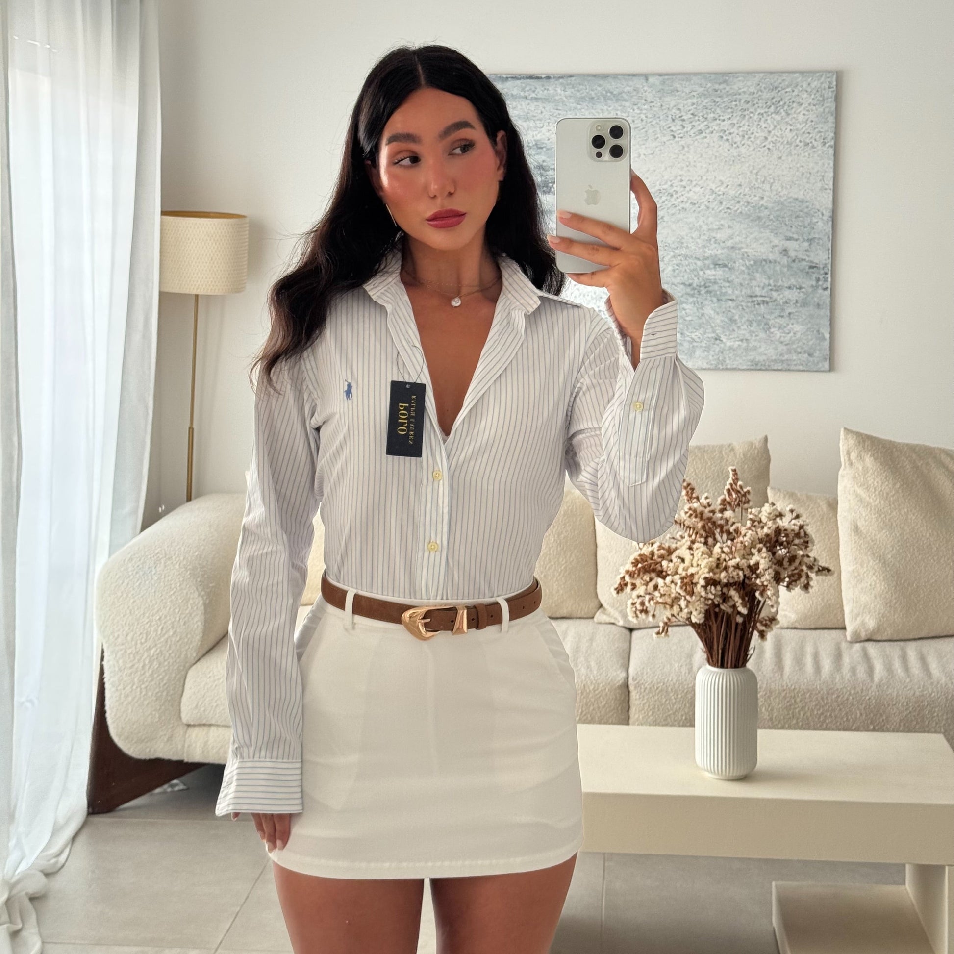 מכופתרת חדשה פולו ראלף לורן בלבן פסים תכלת עם טיקט