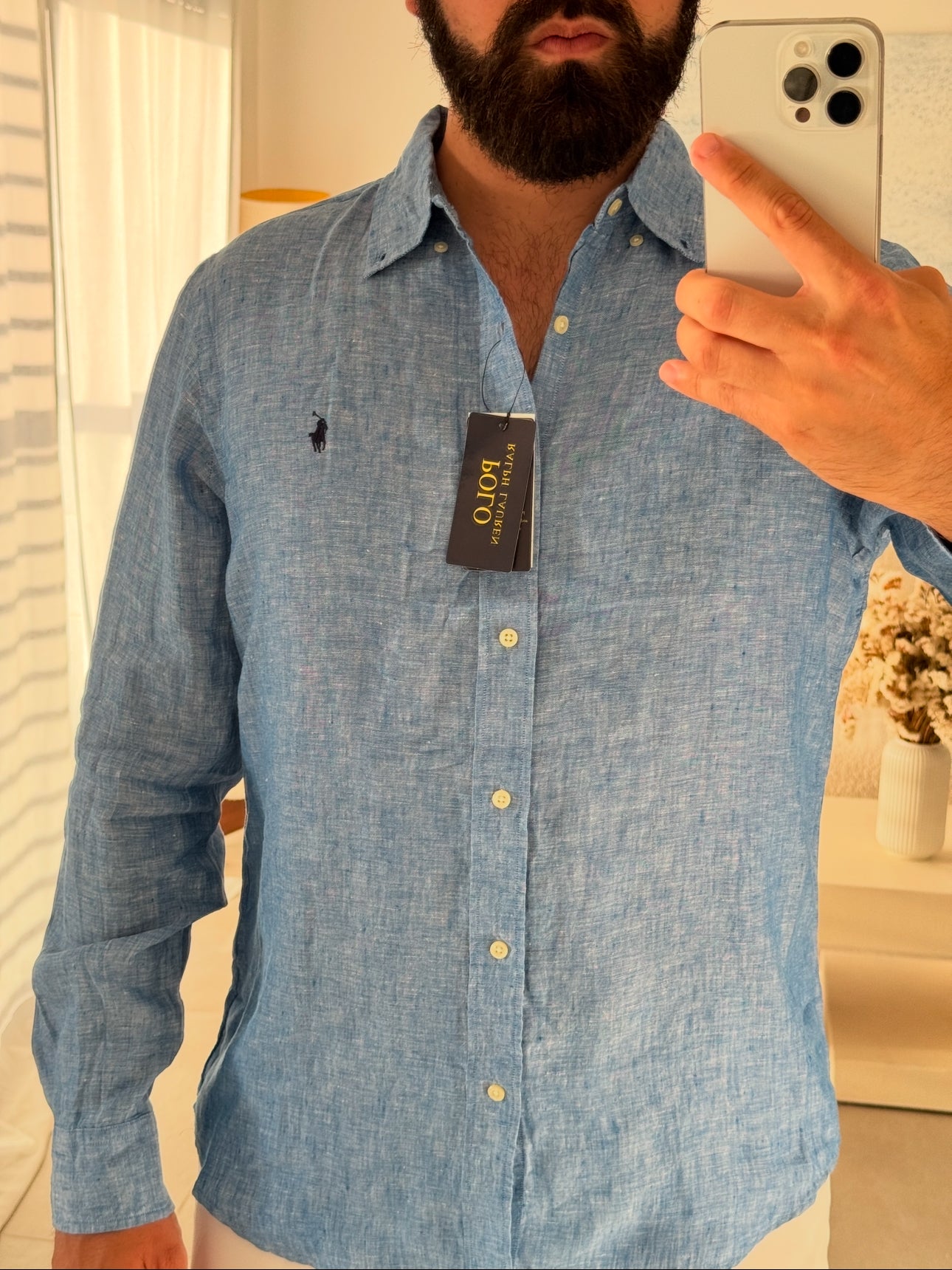 מכופתרת פשתן פולו ראלף לורן בכחול לוגו כחול חדשה עם טיקט