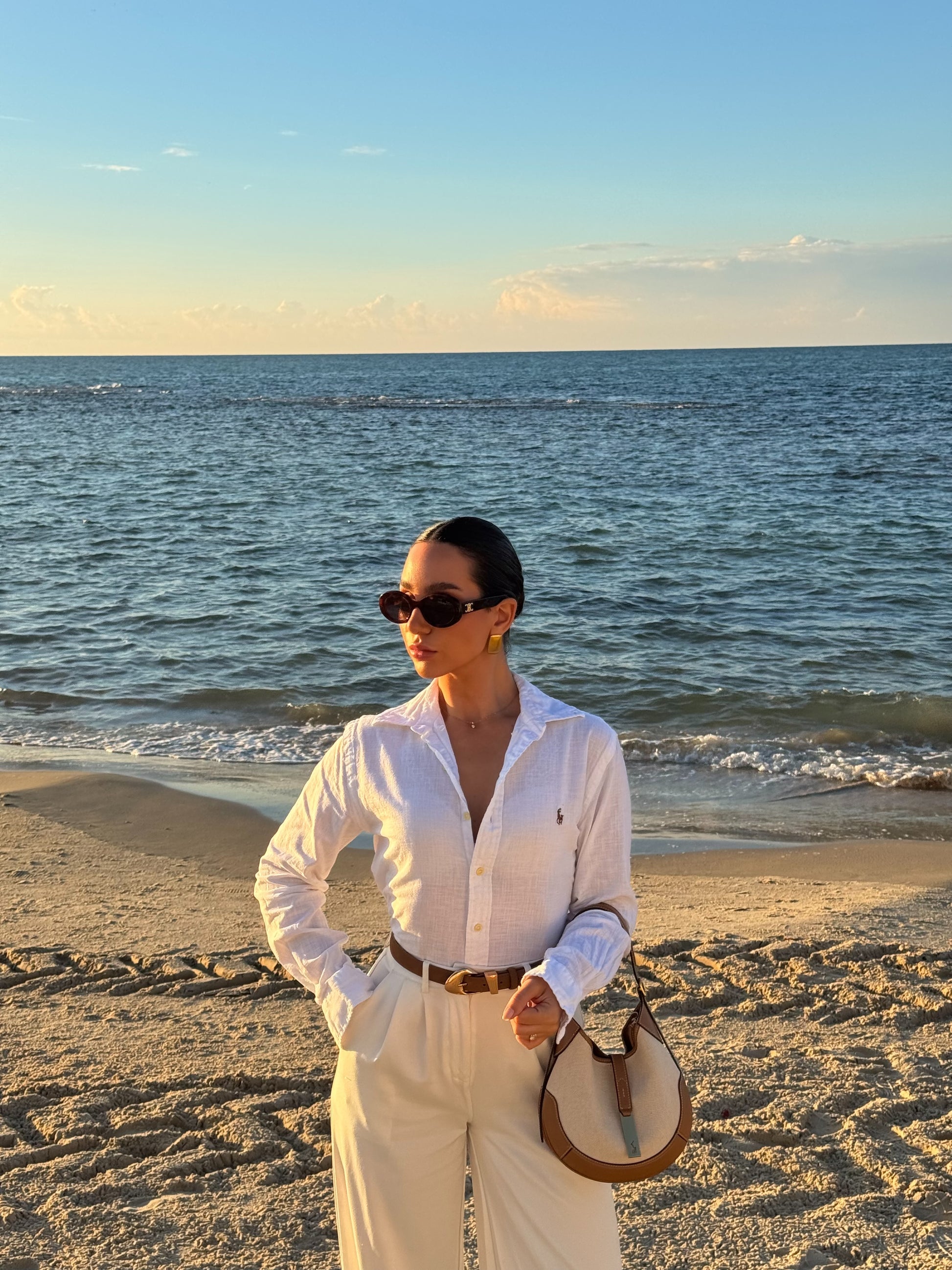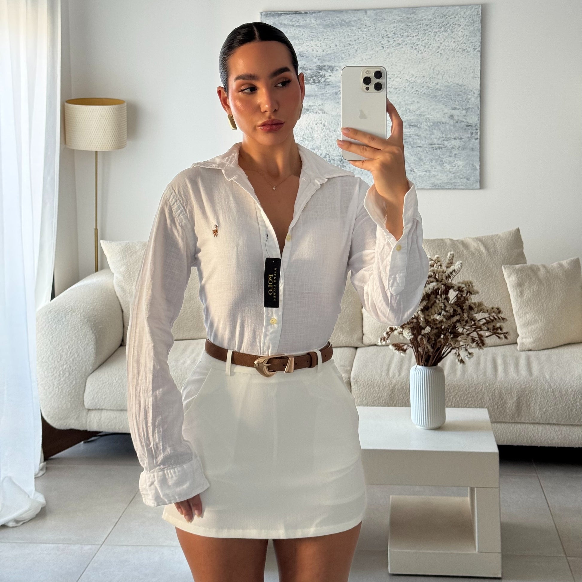 מכופתרת פשתן פולו ראלף לורן בלבן לוגו חום חדשה עם טיקט