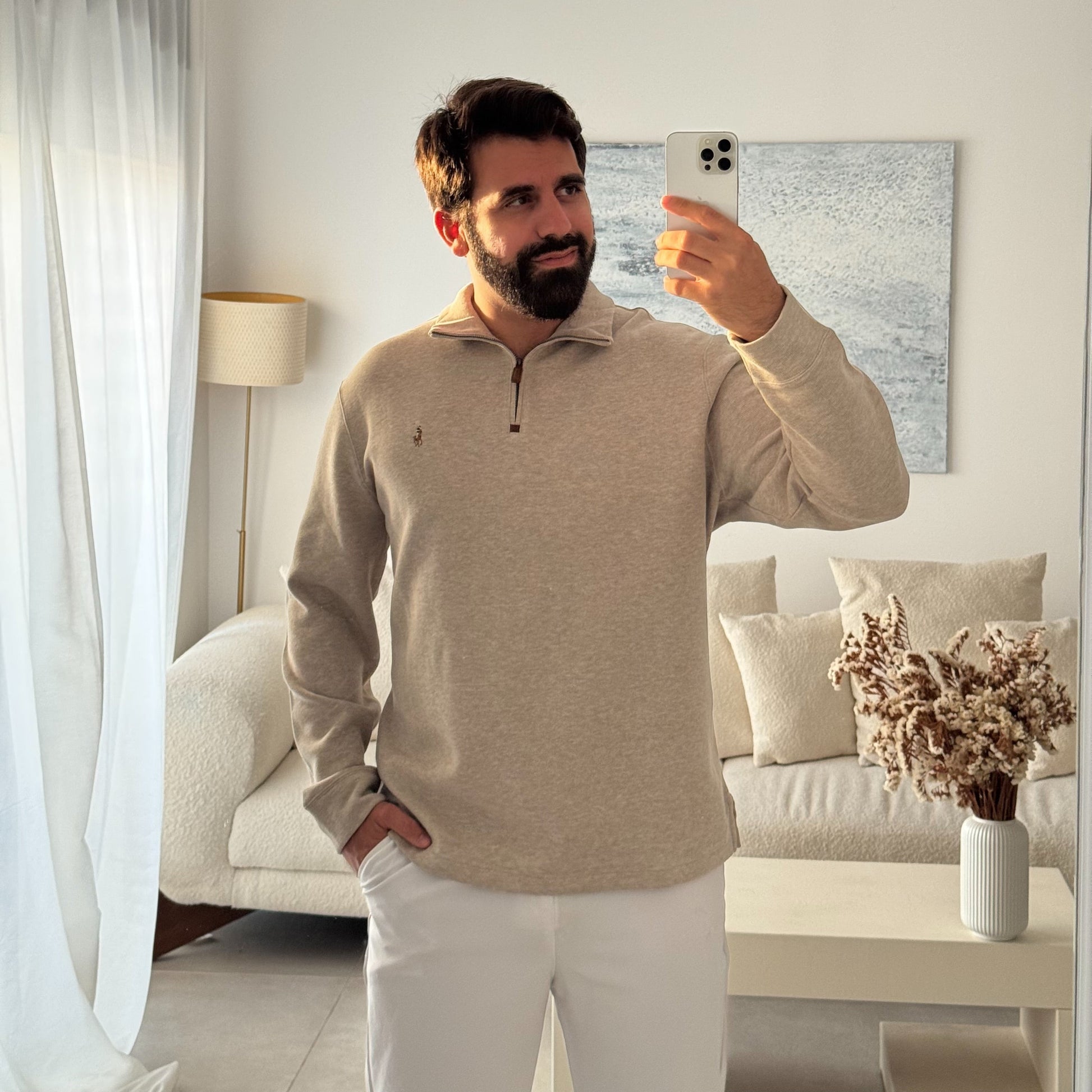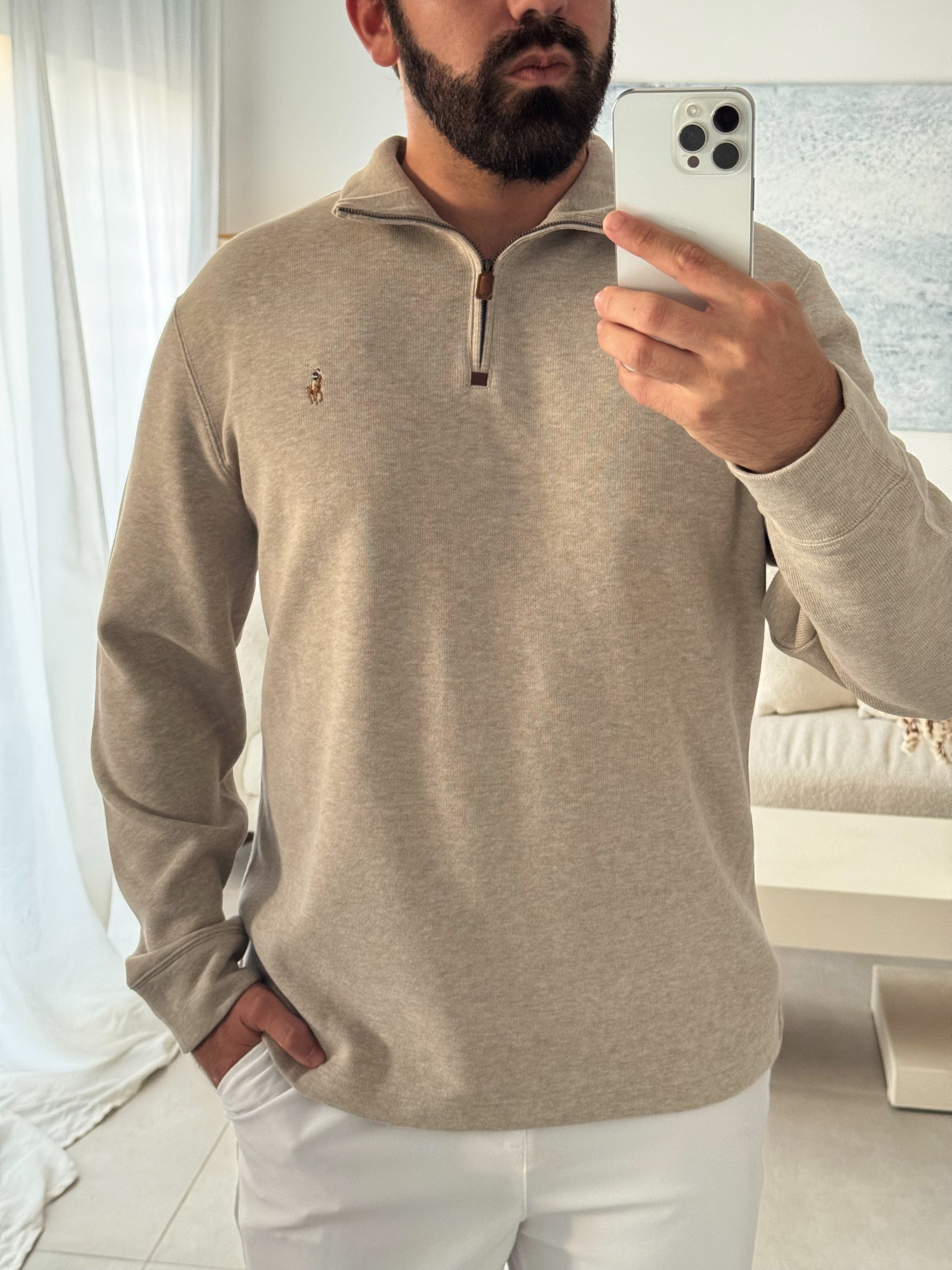 סריג פולו ראלף לורן עם חצי רוכסן בצבע בז׳